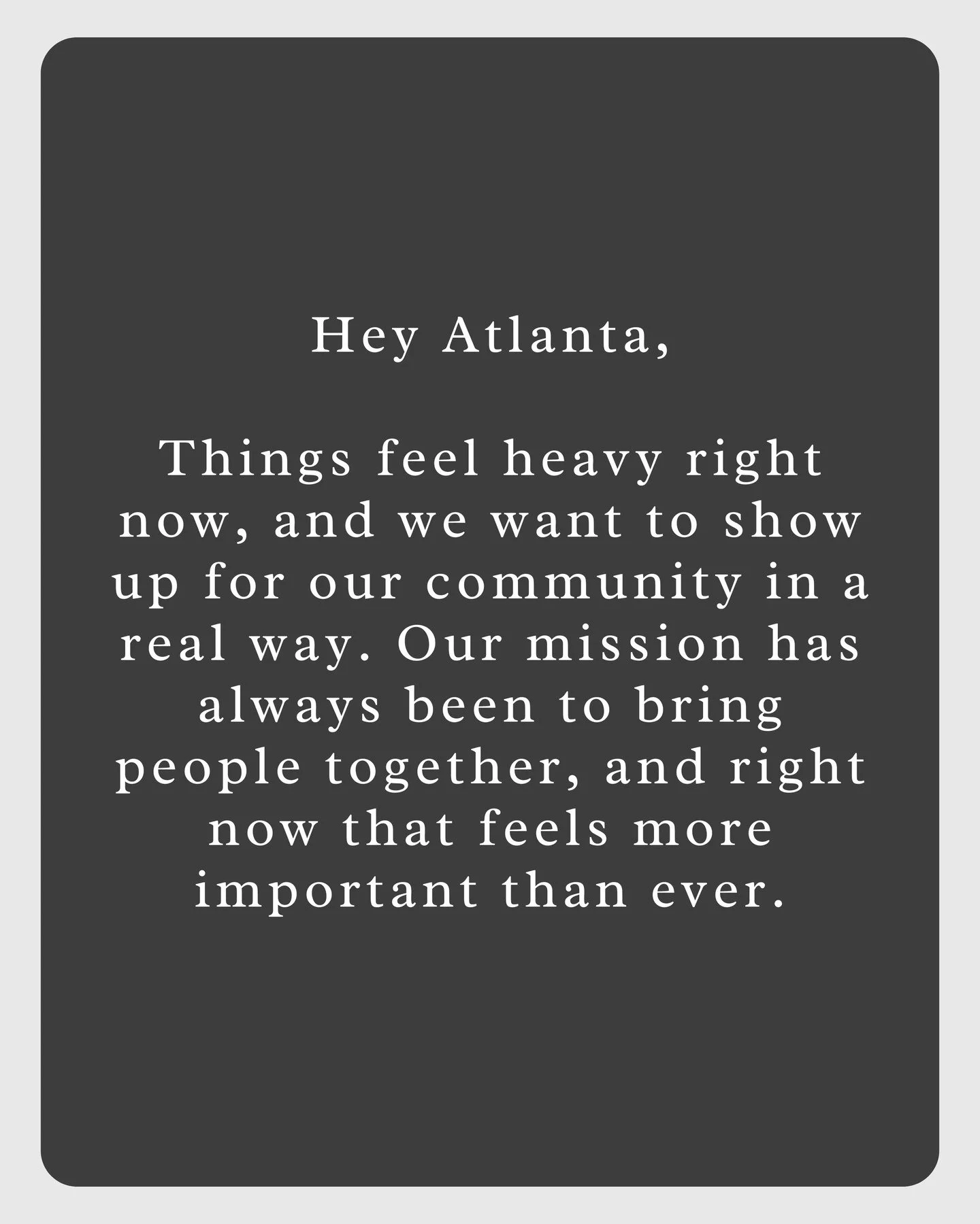 Things feel heavy right now, and we want to show up for our community in a real way. Our mission has always been to bring people together, and right now that feels more important than ever.⁠