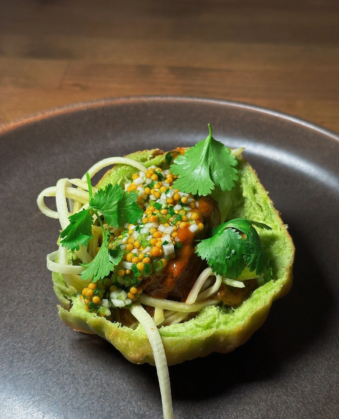 February’s final menu features two new dishes, while we start the long goodbye for the crowd favorite course: duck confit, green mango, and poori bread.⁠